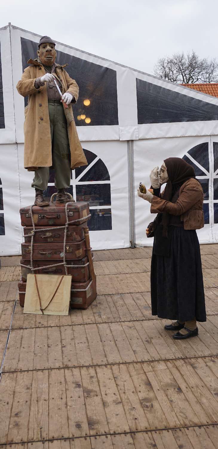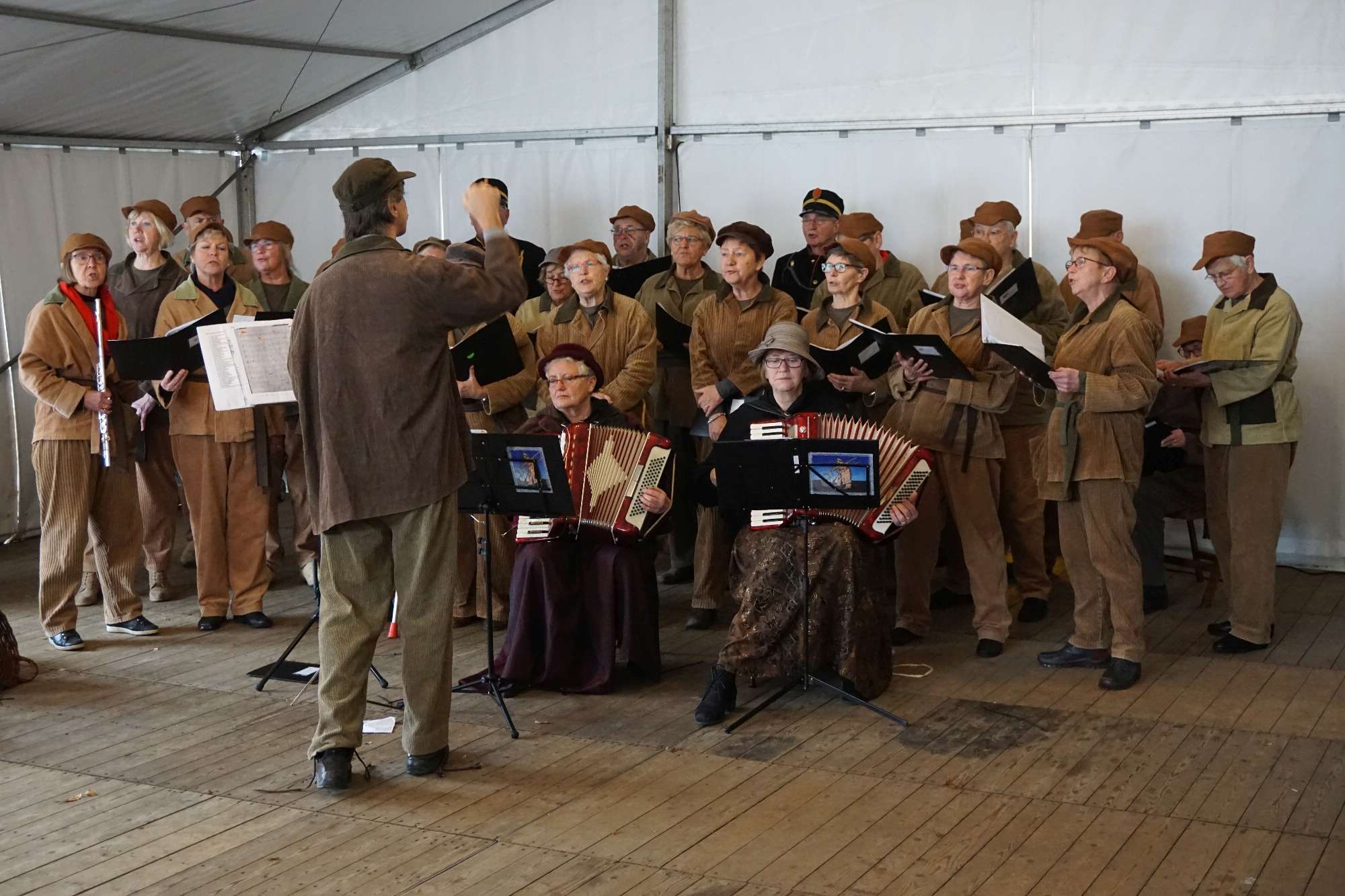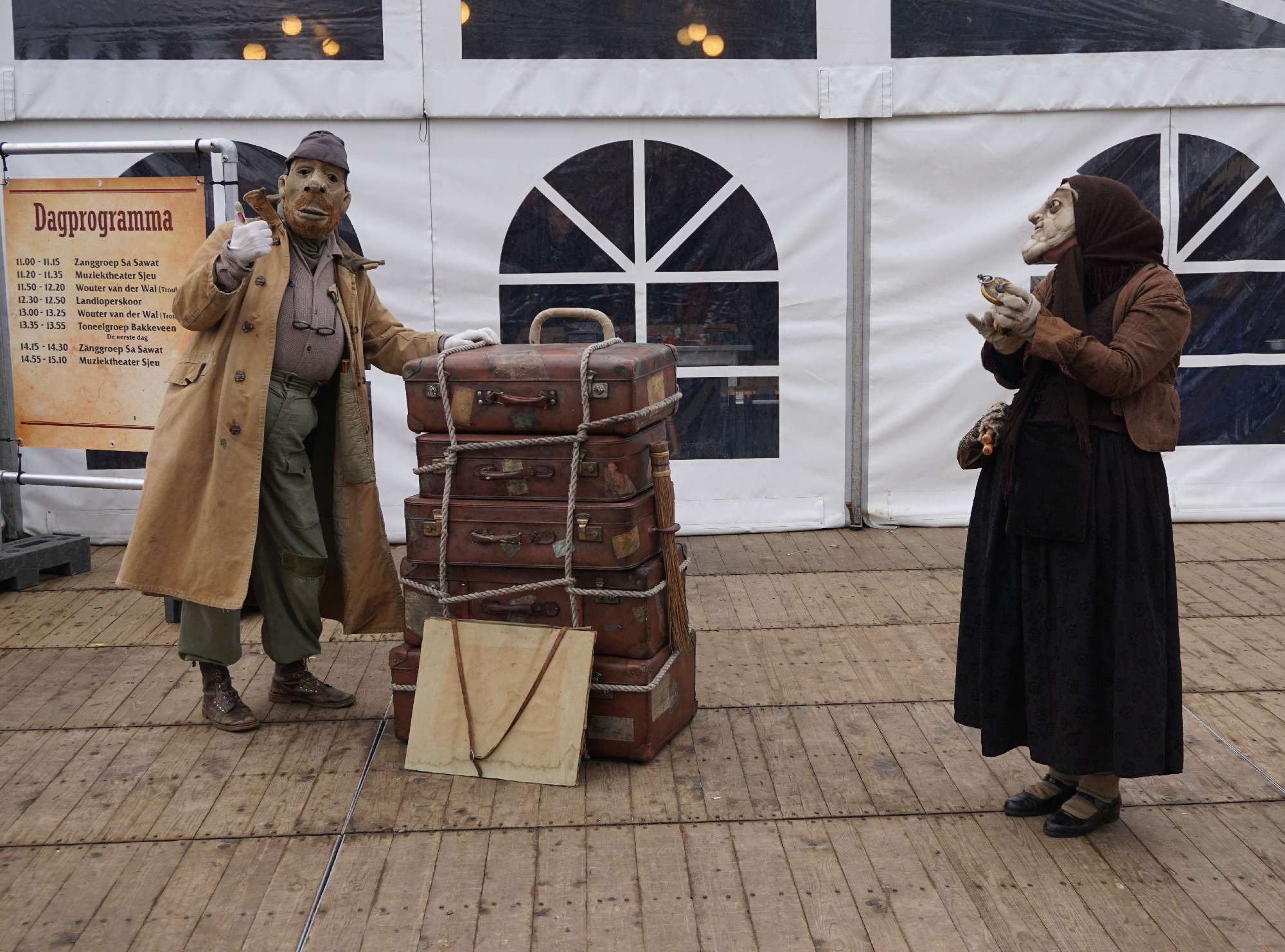 In stijl ingerichte kraampjes, een landloperskoor, exercities van landlopers en een
