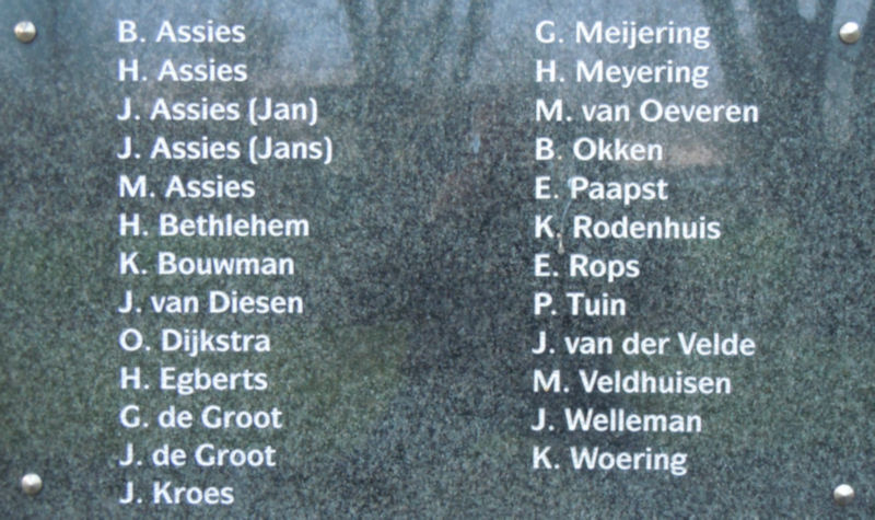 Het verzetsmonument is opgericht ter nagedachtenis aan 25 inwoners van Veenhuizen die tijdens de bezettingsjaren door oorlogshandelingen om het leven zijn gekomen.